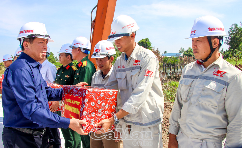 Nhân dịp đầu năm 2026, Bộ trưởng Bộ Xây dựng Trần Hồng Minh và lãnh đạo Tỉnh uỷ, UBND tỉnh Cà Mau đã trao tặng những phần quà ý nghĩa, động viên các kỹ sư, công nhân đang trực tiếp làm việc trên công trường. Bộ trưởng bày tỏ sự thấu hiểu với những vất vả của đội ngũ những người thi công tại vùng sông nước và mong muốn mỗi cá nhân sẽ nỗ lực vượt khó, xem việc hoàn thành cao tốc là sứ mệnh góp phần đưa đất nước bước vào kỷ nguyên phát triển mới.