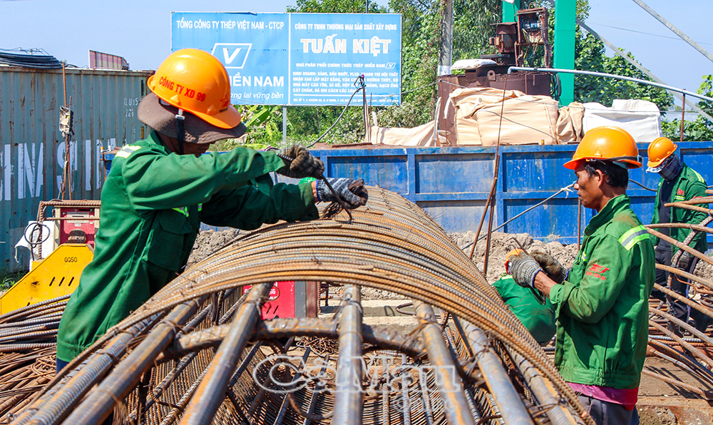 Hiện dự án đang triển khai hai gói thầu xây lắp chính. Gói XL01 do Tổng công ty Xây dựng Trường Sơn (Binh đoàn 12) đảm nhận, với hơn 226 kỹ sư, công nhân và 75 thiết bị, máy móc. Nhà thầu đang hoàn thiện hệ thống lán trại, trạm bê tông, bãi đúc dầm và thi công đắp cát đường công vụ trên 11,5km mặt bằng đã tiếp cận.