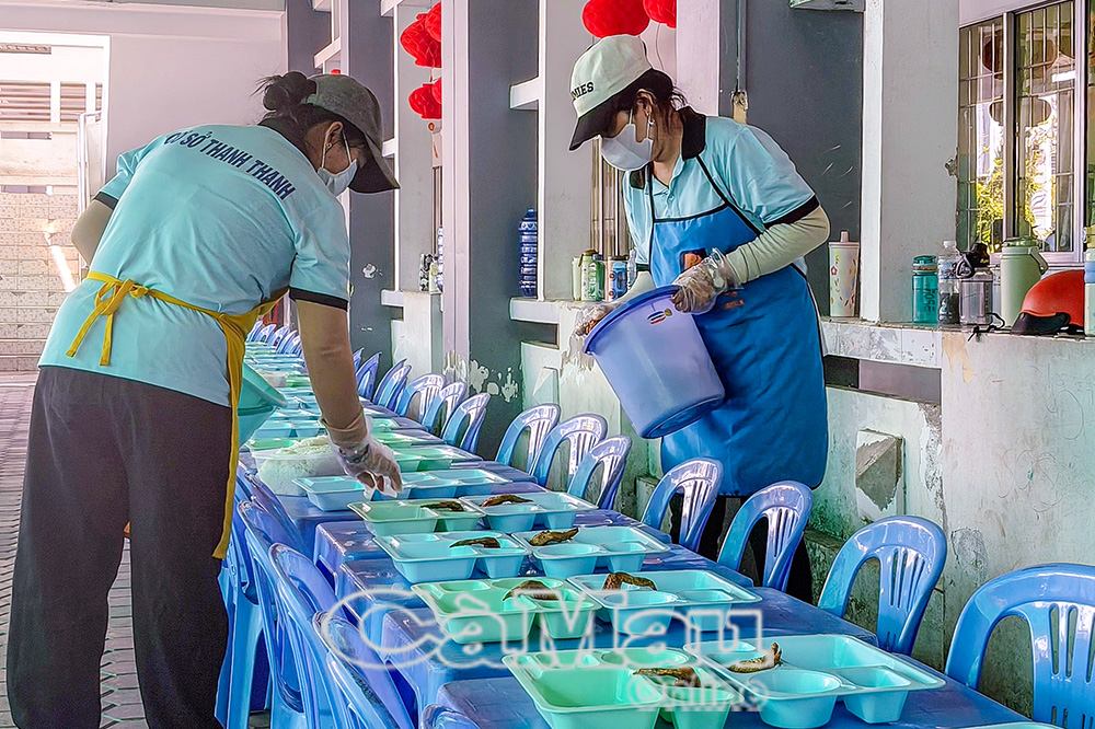 Người lao động luôn mong muốn được đảm bảo các quyền lợi theo quy định. (Trong ảnh: Nhân viên Cơ sở Thanh Thanh phục vụ các suất ăn cho trẻ bán trú).