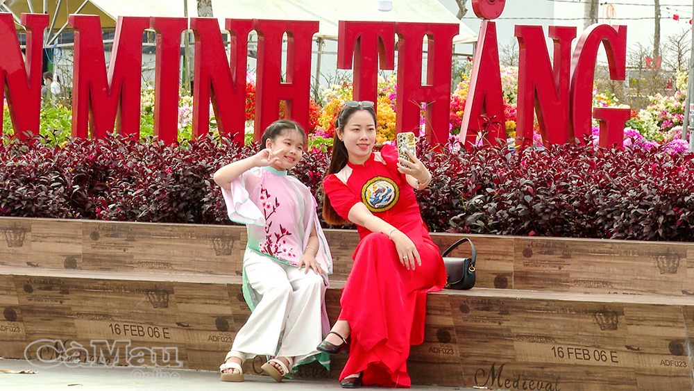 "Chợ hoa Tết được bày trí rất đẹp, tôi cùng bạn bè tranh thủ diện áo dài đến chụp ảnh, lưu lại khoảnh khắc đầu xuân và kỳ vọng năm mới nhiều thuận lợi", chị Võ Thị Kiều Vân, phường Tân Thành, vui vẻ nói.