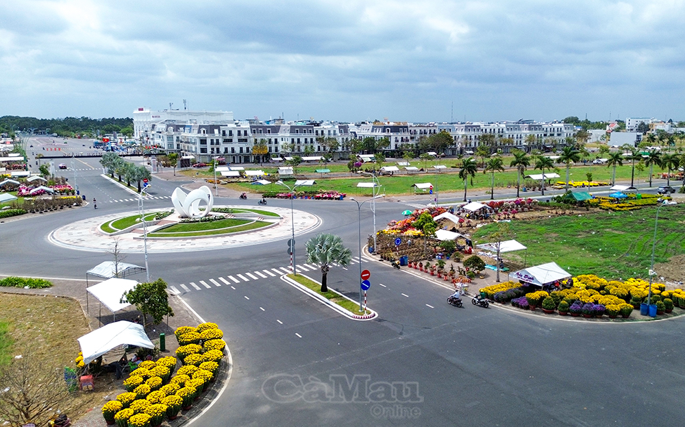 Năm nay, chợ hoa được bố trí dọc các tuyến đường chính trong Khu dân cư Minh Thắng, giáp Quảng trường Phan Ngọc Hiển.