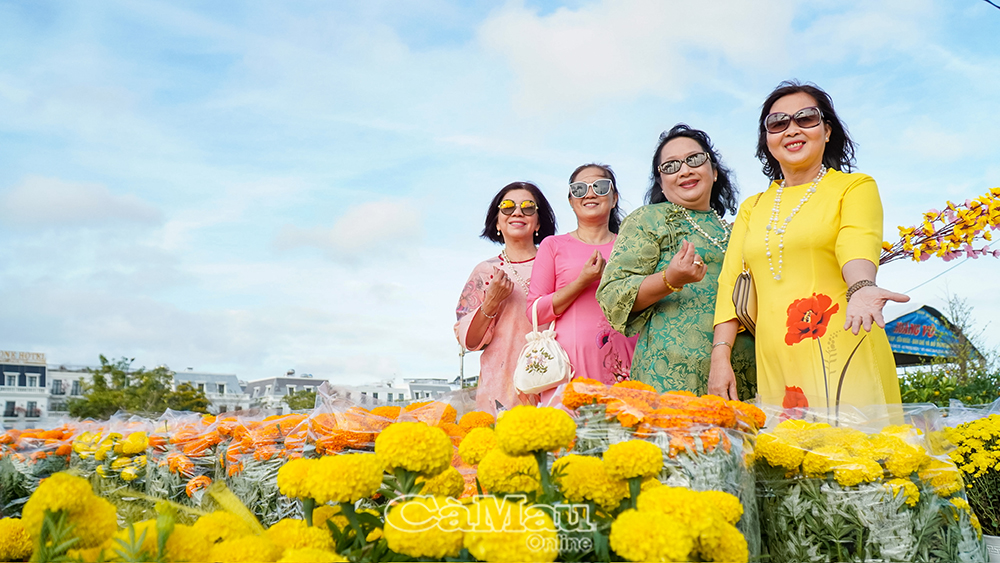 Nụ cười của tiểu thương, hình ảnh người dân tham quan, chụp ảnh tại chợ hoa Tết phường An Xuyên tạo nên không khí xuân vui tươi, rộn ràng./.