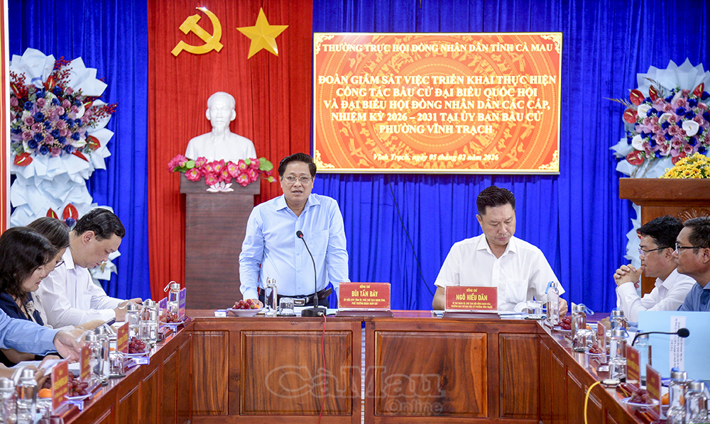 Báo Cà Mau Ngày 5/2, HĐND tỉnh Cà Mau thành lập các đoàn giám sát việc triển khai thực hiện công tác bầu cử đại biểu Quốc hội khoá XVI và đại biểu HĐND các cấp nhiệm kỳ 2026-2031 tại một số xã, phường trên địa bàn tỉnh.