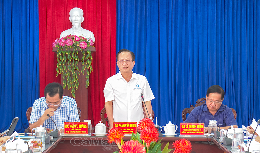 Chủ tịch HĐND tỉnh Phạm Văn Thiều phát biểu chỉ đạo tại cuộc họp.