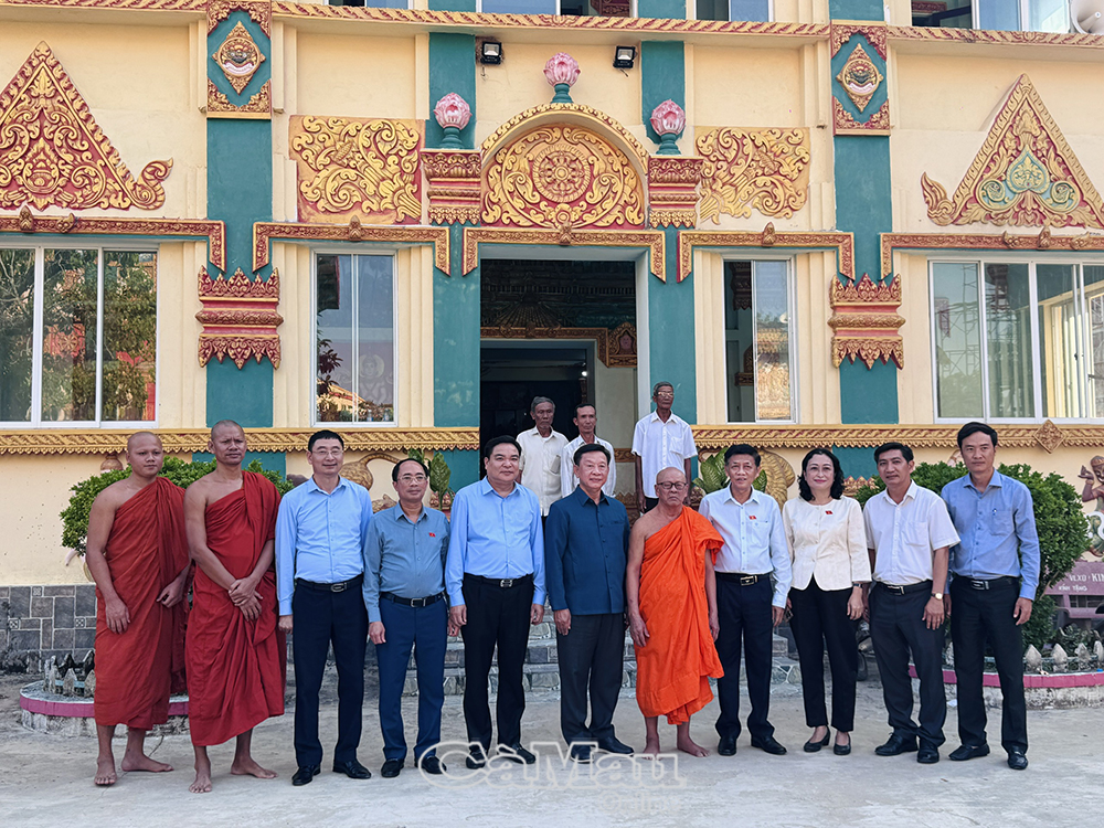 * Đoàn công tác đã đến thăm và chúc Tết cổ truyền Chôl Chnăm Thmây tại Hội Đoàn kết sư sãi yêu nước tỉnh Cà Mau và chùa Monivongsa Bopharam (phường An Xuyên).