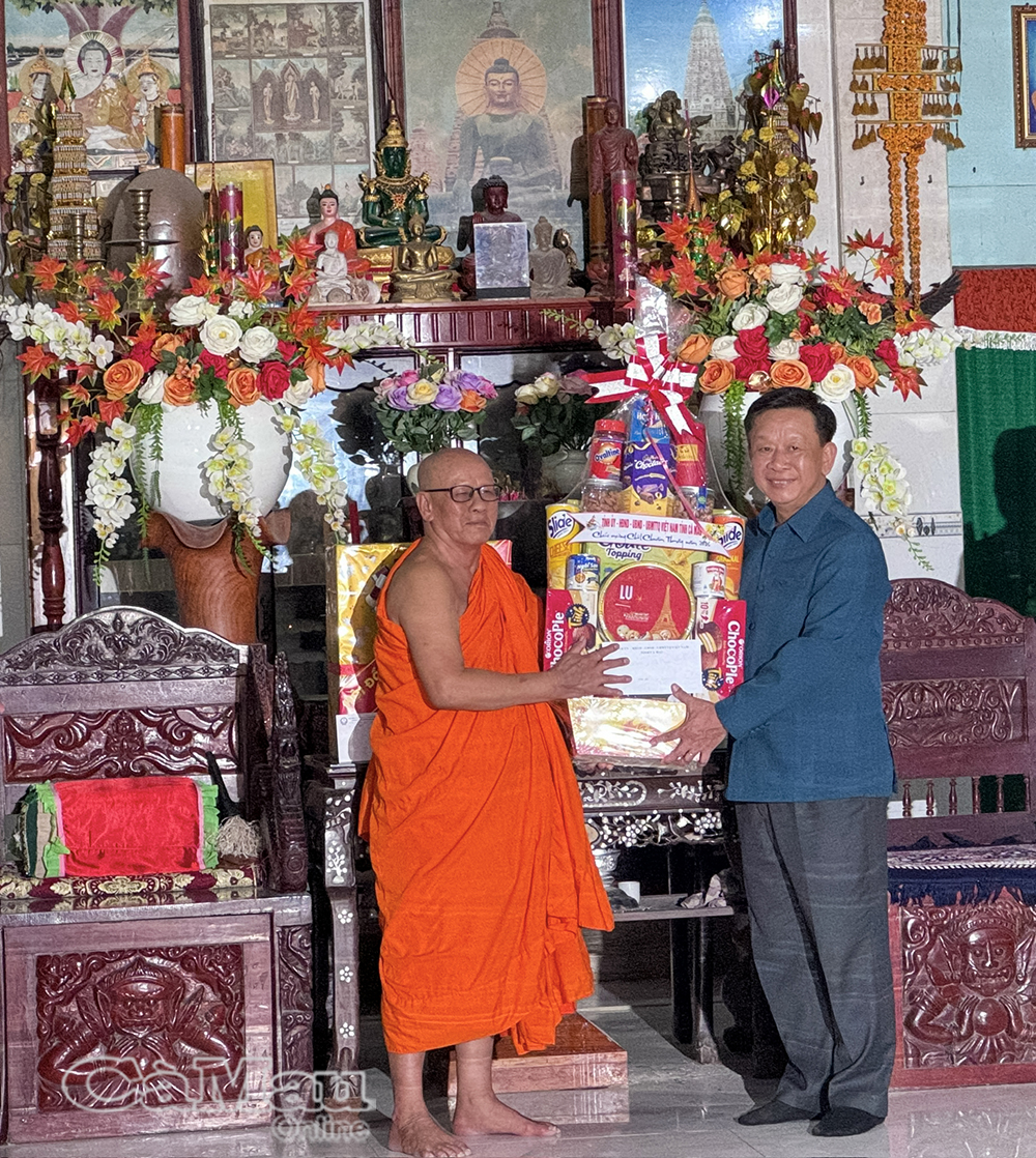 Dịp này, đoàn công tác trao tặng nhiều phần quà Tết ý nghĩa đến Hội Đoàn kết sư sãi yêu nước tỉnh, chùa Monivongsa Bopharam và các vị sư. Đồng thời, trao tặng 20 suất quà, (mỗi suất trị giá 1 triệu đồng) cho các hộ đồng bào Khmer tiêu biểu tại địa phương.
