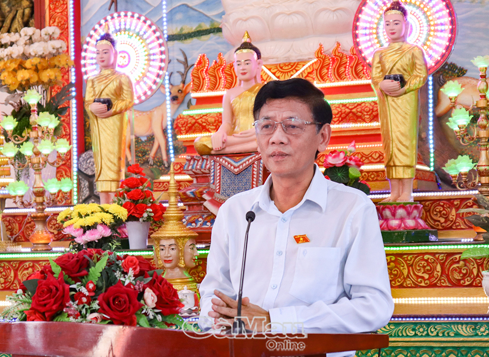 Đáp lời đoàn công tác, Hoà thượng Thạch Hà, Uỷ viên Hội đồng Trị sự Giáo hội Phật giáo Việt Nam, Phó Chủ tịch Thường trực Hội Đoàn kết sư sãi yêu nước tỉnh, Trưởng ban Trị sự Giáo hội Phật giáo tỉnh Cà Mau, Trụ trì chùa Monivongsa Bopharam, bày tỏ trân trọng trước sự quan tâm của Đảng, Nhà nước; khẳng định sẽ tiếp tục đồng hành cùng dân tộc, góp phần xây dựng quê hương Cà Mau ngày càng phát triển.