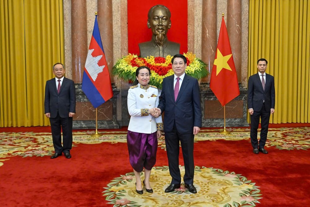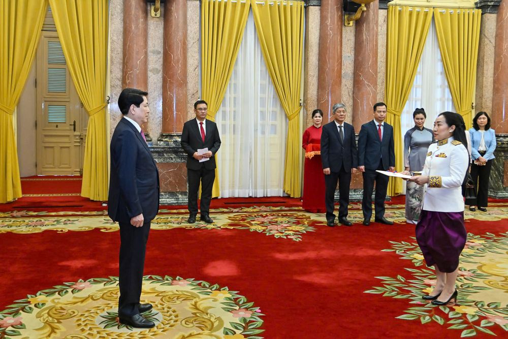 Chủ tịch nước Lương Cường tiếp nhận quốc thư từ Đại sứ Campuchia tại Việt Nam Touch Pharat.
