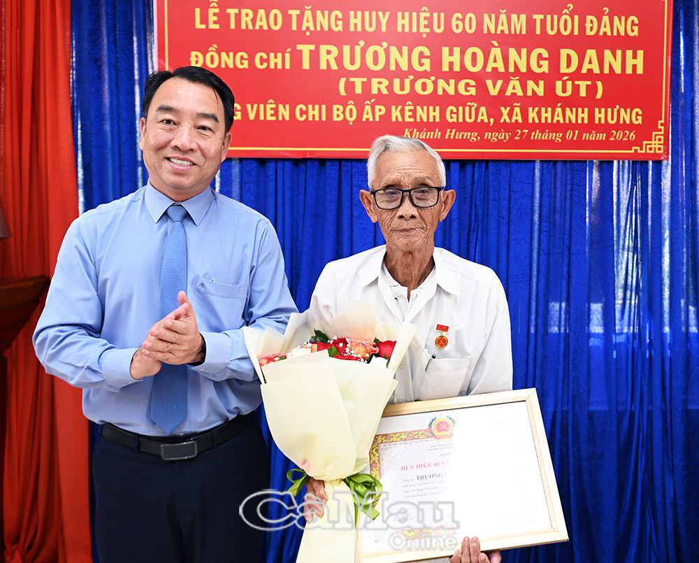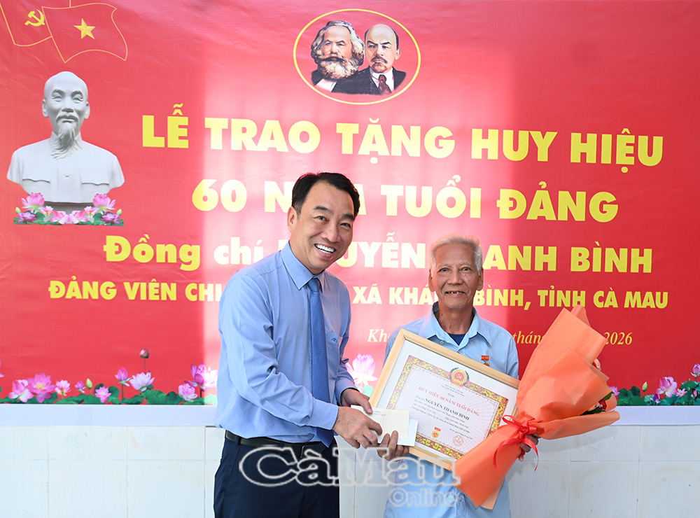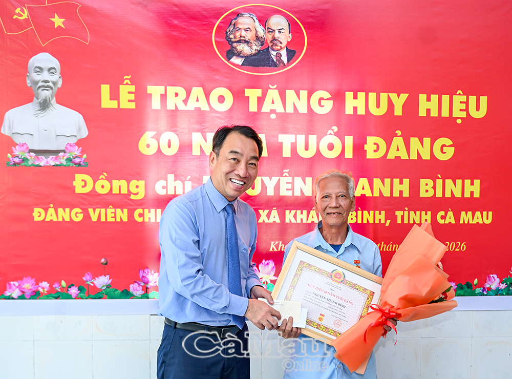 Báo Cà Mau Sáng 27/1, đồng chí Lữ Quang Ngời, Phó Bí thư Tỉnh uỷ, Chủ tịch UBND tỉnh Cà Mau đã đến trao Huy hiệu Đảng nhân kỷ niệm 96 năm Ngày thành lập Đảng Cộng sản Việt Nam (3/2/1930-3/2/2026) tại xã Khánh Hưng và Khánh Bình.