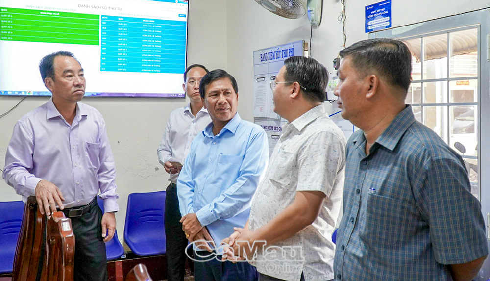 Chủ tịch UBND tỉnh Lữ Quang Ngời khảo sát Trung tâm Phục vụ hành chính công Xã Trần Phán.