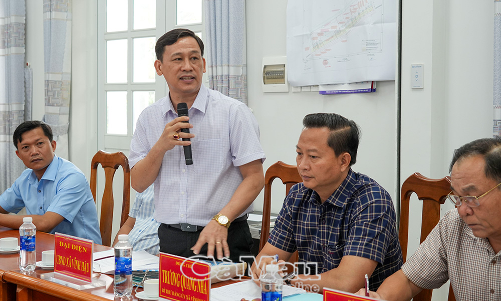 Đại diện lãnh đạo UBND xã Vĩnh Hậu trình bày quan điểm về công tác quản lý đất đai tại địa phương và đề xuất hướng giải quyết.