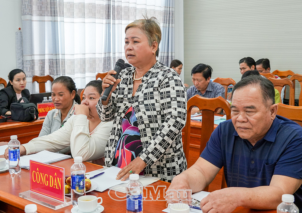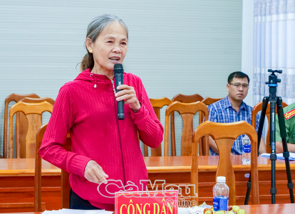 Bà Nguyễn Thị Chín nêu ý kiến liên quan đến việc cấp Giấy chứng nhận quyền sử dụng đất cho gia đình bà và các hộ dân lân cận.
