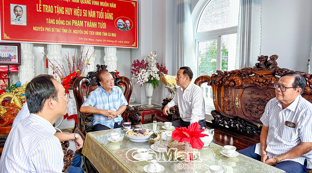 Báo Cà Mau Tiếp tục hoạt động tri ân nguyên lãnh đạo tỉnh dịp mừng Đảng, mừng xuân mới, chiều 11/2 (24 Tết), đồng chí Lữ Quang Ngời, Phó Bí thư Tỉnh uỷ, Chủ tịch UBND tỉnh Cà Mau, đến thăm, chúc Tết đồng chí Phạm Thành Tươi và đồng chí Phạm Thạnh Trị, nguyên Phó Bí thư Tỉnh uỷ, nguyên Chủ tịch UBND tỉnh.