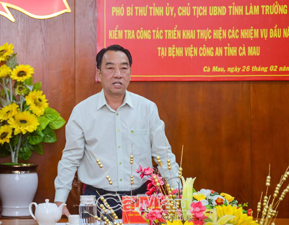 Chủ tịch UBND tỉnh Lữ Quang Ngời biểu dương những nỗ lực của tập thể Bệnh viện Công an tỉnh Cà Mau.