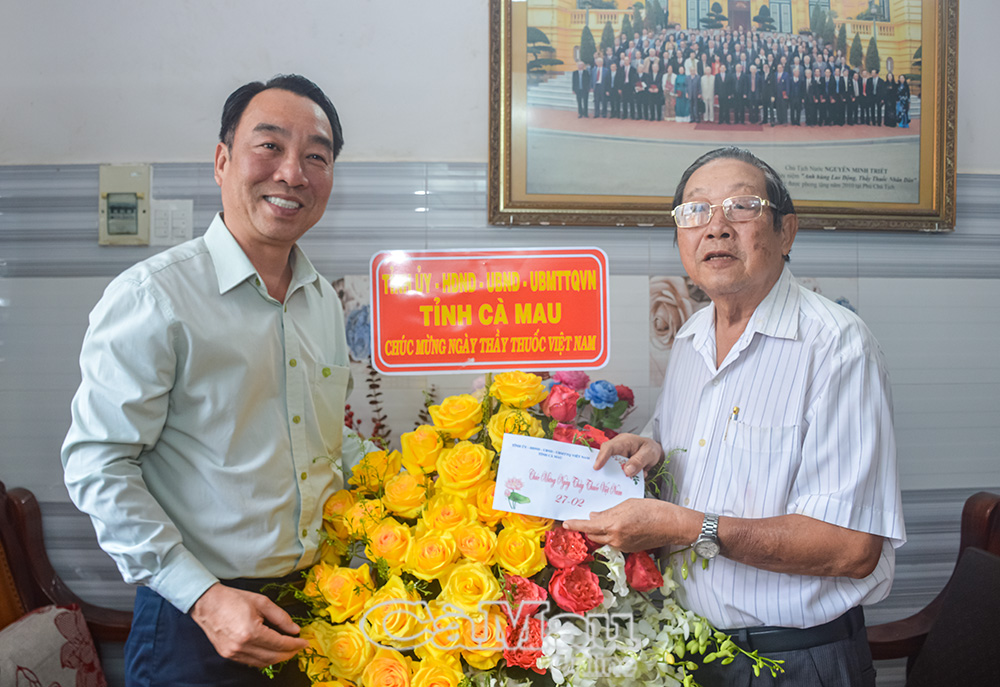 Tiếp đó, đoàn đến thăm, tri ân Thầy thuốc Nhân dân Trần Minh Tuấn, nguyên Hiệu trưởng Trường Cao đẳng Y tế Cà Mau và bác sĩ Trần Văn Phước, Giám đốc Bệnh viện Lao và Bệnh phổi tỉnh. Tại các điểm đến, Chủ tịch UBND tỉnh ân cần thăm hỏi sức khoẻ, bày tỏ sự trân trọng đối với những đóng góp của các y, bác sĩ trong công tác đào tạo nguồn nhân lực và chăm sóc sức khoẻ Nhân dân.