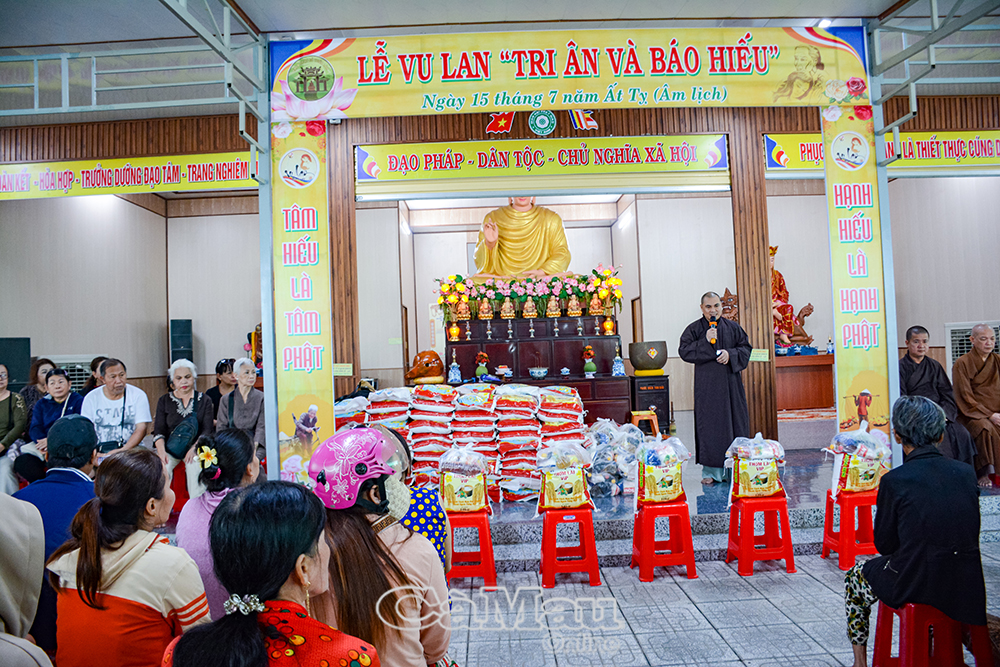 Thay mặt chư tăng nhà chùa, Đại đức Thích Nhuận Trí gửi lời thăm hỏi sức khỏe, động viên tinh thần bà con đến nhận quà. Đại đức nhấn mạnh, đây là việc làm thiết thực, thể hiện tinh thần tương thân tương ái của dân tộc Việt Nam, đồng thời cũng là biểu hiện của lòng từ bi và sẻ chia của người con Phật đối với những hoàn cảnh khó khăn.