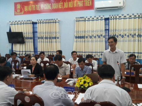 | Trưởng ấp Kinh Hội, xã Khánh Bình, huyện Trần Văn Thời Trần Văn Bé chia sẻ những vướng mắc trong quá trình triển khai Nghị quyết 25, Nghị quyết 26 của HĐND tỉnh. Ảnh: Phương Lài |