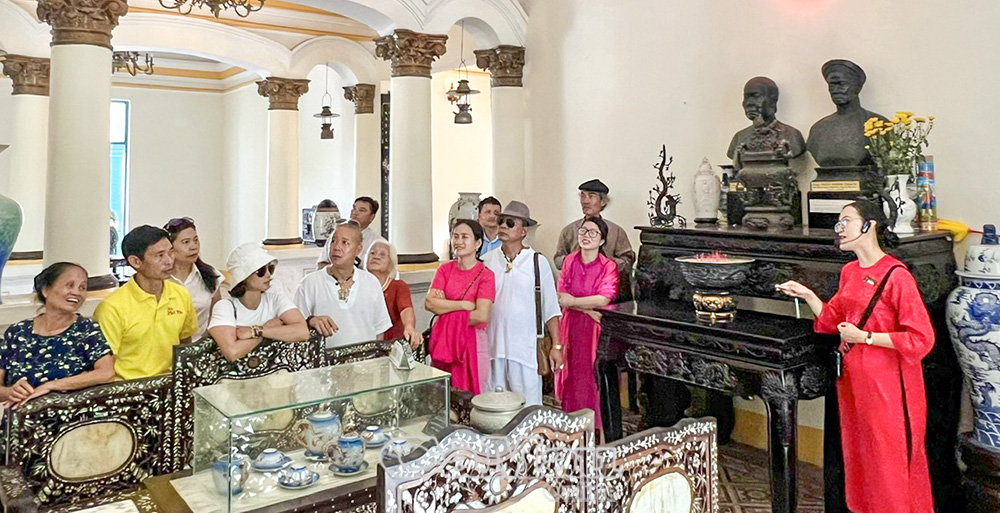 Du khách tham quan, tìm hiểu tại Nhà Công tử Bạc Liêu (phường Bạc Liêu).