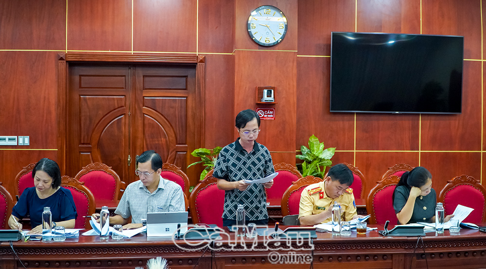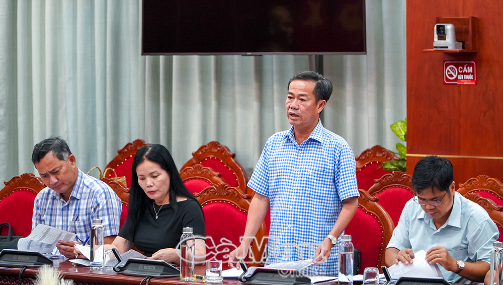 Ông Mã Tấn Cọp, Phó Giám đốc Sở Tài chính, Phó Trưởng tiểu ban Hậu cần và An ninh, phát biểu tại cuộc họp.