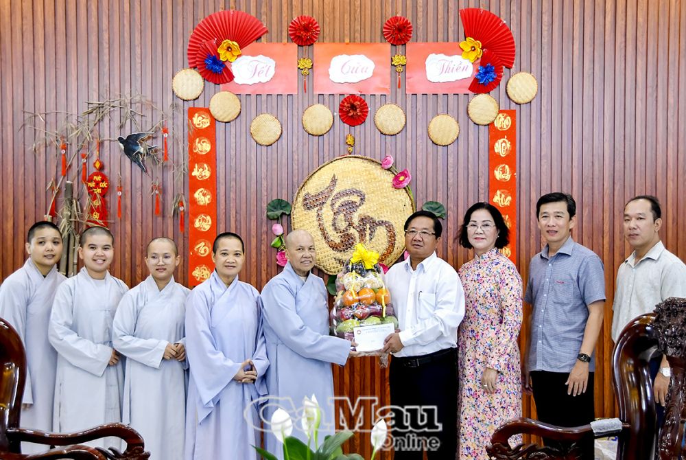 Cũng trong ngày 9/5, đồng chí Lê Thanh Triều, Uỷ viên Ban thường vụ Tỉnh uỷ, Chủ tịch Ủy ban MTTQ Việt Nam tỉnh Cà Mau, cùng đoàn công tác đã đến thăm và chúc mừng Phân ban Ni giới thuộc Ban trị sự Giáo hội Phật giáo Việt Nam tỉnh tại chùa Kim Sơn, Phường 6, TP Cà Mau.