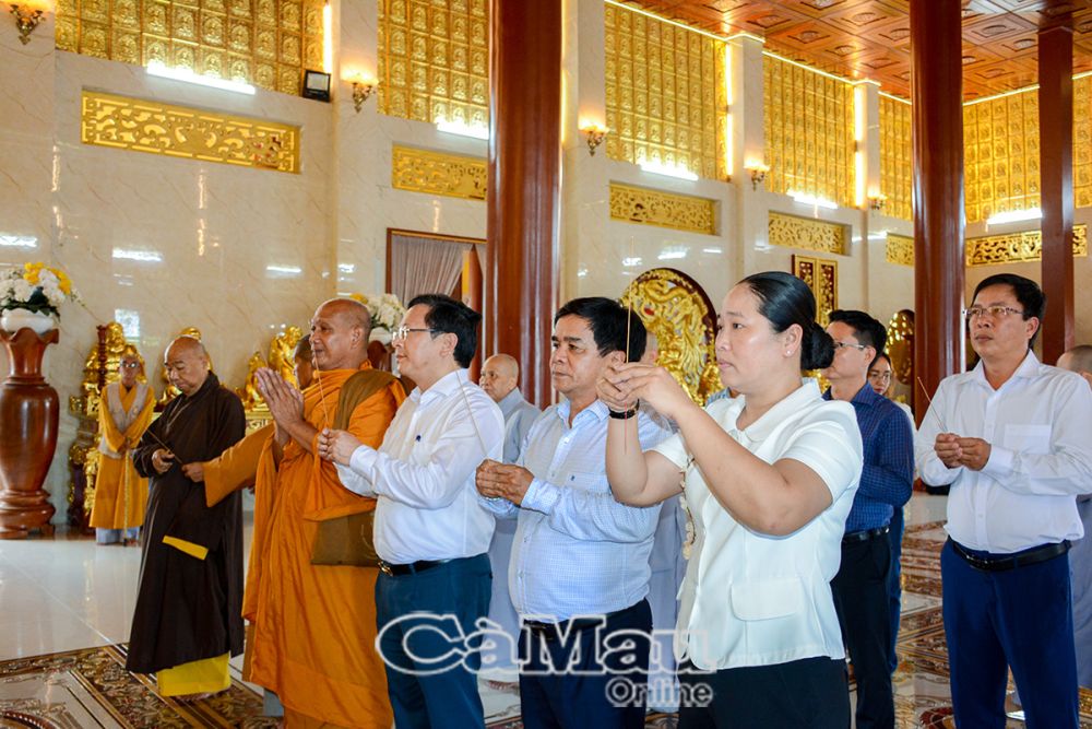 Nằm trong khuôn khổ các hoạt động thăm, chúc mừng của Tỉnh uỷ, HĐND, UBND, Uỷ ban MTTQ Việt Nam tỉnh nhân Đại lễ Phật đản 2025 - Phật lịch 2569, sáng nay (9/5), Phó bí thư Thường trực Tỉnh uỷ Nguyễn Đức Hiển làm trưởng đoàn, cùng ông Huỳnh Ngọc Sang, Phó chủ tịch Uỷ ban MTTQ Việt Nam tỉnh; bà Nguyễn Thu Tư, Giám đốc Sở Dân tộc và Tôn giáo tỉnh đến thăm, tặng quà, chúc mừng Ban Trị sự Giáo hội Phật giáo Việt Nam tỉnh (tại Chùa Phật tổ, Phường 2, TP Cà Mau).