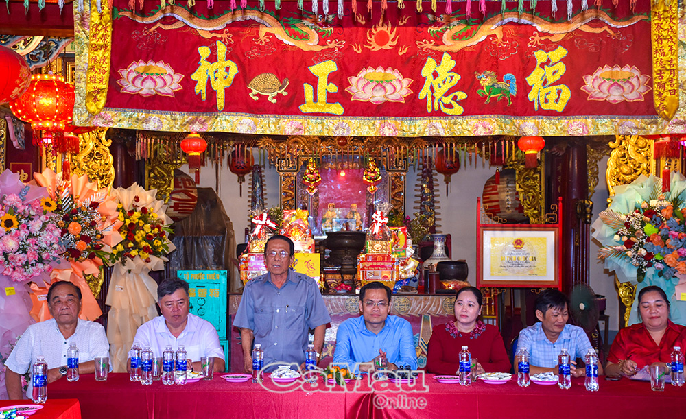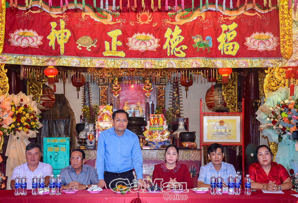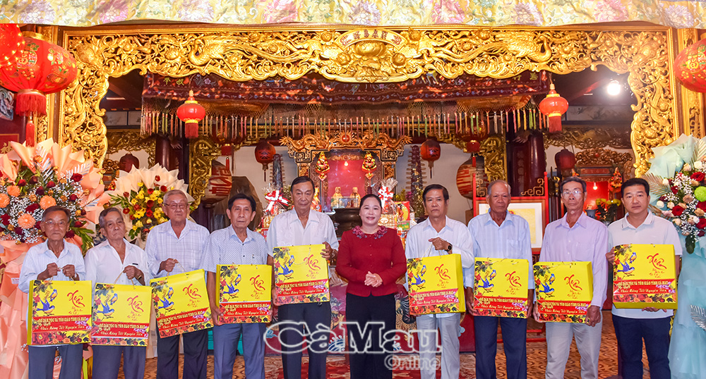 Dịp này, đoàn công tác trao quà của Tỉnh uỷ - HĐND - UBND - Uỷ ban MTTQ Việt Nam tỉnh Cà Mau tặng đến đại điện Phước Đức Cổ Miếu và Miếu Minh Nguyệt Cư Sĩ Lâm; đồng thời tặng quà 20 vị cao niên, trưởng ban quản lý các Hội, Đoàn người Hoa