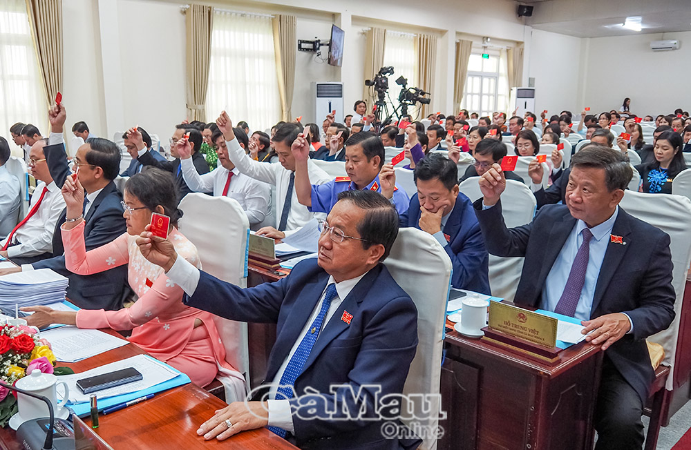 Tại kỳ họp lần này, HĐND tỉnh đã thống nhất thông qua 25 báo cáo, thông báo, kế hoạch và biểu quyết thông qua 35 nghị quyết trên các lĩnh vực (trong đó có 22 nghị quyết quy phạm pháp luật), nhằm cụ thể hoá kịp thời chủ trương của Trung ương; đồng thời quyết nghị nhiều nội dung quan trọng, cấp thiết của địa phương, gồm: Nghị quyết về kế hoạch phát triển kinh tế - xã hội 5 năm (2026-2030); Nghị quyết quy định về mức hỗ trợ sản xuất nông nghiệp để khôi phục sản xuất vùng bị thiệt hại do thiên tai, dịch hại thực vật trên địa bàn tỉnh Cà Mau; Nghị quyết quy định mức hỗ trợ kinh phí hoạt động Tổ công nghệ số cộng đồng giai đoạn 2026-2030 trên địa bàn tỉnh Cà Mau...