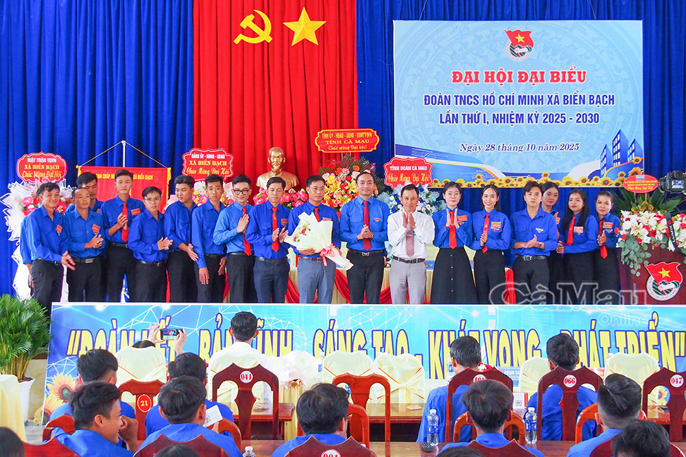 Báo Cà Mau Chiều 28/10, đồng chí Hồ Thanh Thuỷ, Phó Bí thư Tỉnh uỷ Cà Mau đến dự Đại hội đại biểu Đoàn TNCS Hồ Chí Minh xã Biển Bạch lần thứ I, nhiệm kỳ 2025-2030. Cùng dự và chỉ đạo Đại hội có đồng chí Phạm Tuấn Tài, Uỷ viên Ban Chấp hành Trung ương Đoàn, Bí thư Tỉnh đoàn Cà Mau. Đại hội quy tụ 120 đại biểu chính thức, đại diện cho 534 đoàn viên trên địa bàn xã Biển Bạch.