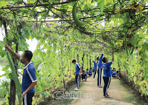 Các học viên lao động, thu hoạch mướp để cải thiện bữa ăn hàng ngày.