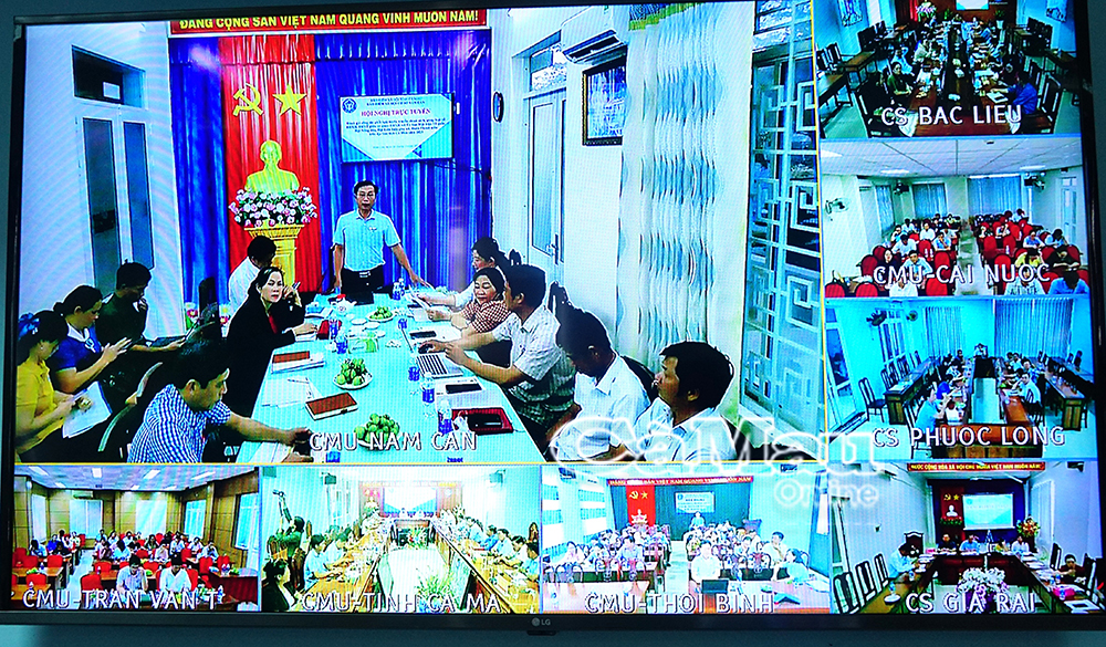Hội nghị trực tuyến tại điểm cầu BHXH tỉnh và các BHXH cơ sở.