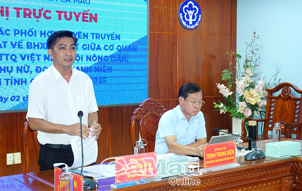 Chiều 2/10, ông Trịnh Trung Kiên, Phó Giám đốc BHXH tỉnh và ông Bùi Minh Hải, Phó Chủ tịch Uỷ ban MTTQ Việt Nam tỉnh đồng chủ trì hội nghị trực tuyến đánh giá kết quả phối hợp tuyên truyền chính sách BHXH, BHYT trong thời gian qua và bàn giải pháp thực hiện hiệu quả hơn trong thời gian tới. Hội nghị có sự tham dự của đại diện Hội Nông dân, Hội LHPN, Đoàn Thanh niên cùng các đơn vị ở cơ sở.