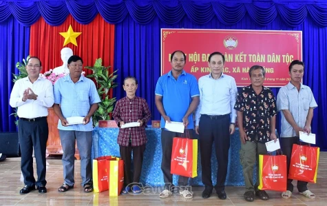 Kỷ niệm 93 năm Ngày thành lập Mặt trận Dân tộc Thống nhất Việt Nam - Ngày truyền thống của MTTQ Việt Nam, sáng 9/11, Bí thư Trung ương Đảng, Trưởng ban Đối ngoại Trung ương Lê Hoài Trung; Phó chủ tịch Uỷ ban Trung ương MTTQ Việt Nam Hoàng Công Thuỷ đến dự Ngày hội Đại đoàn kết toàn dân tộc ở ấp Kinh Tắc, xã Hàm Rồng, huyện Năm Căn.