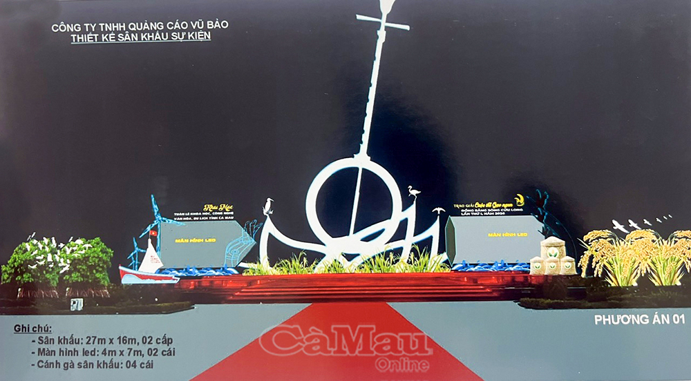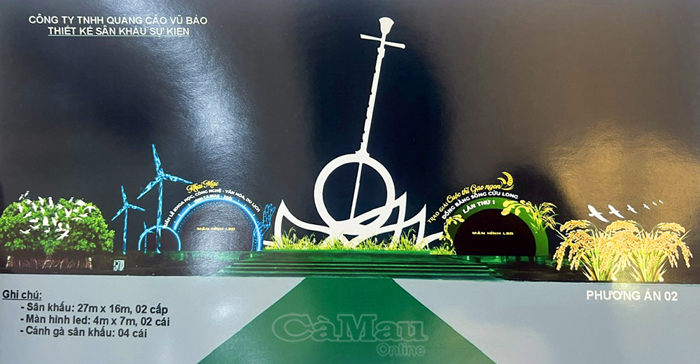 Hai phương án phối cảnh sân khấu tại Quảng trường Hùng Vương - nơi diễn ra Tuần lễ Khoa học, Công nghệ - Văn hoá, Du lịch và Cuộc thi Gạo ngon đồng bằng sông Cửu Long lần thứ I, năm 2026.