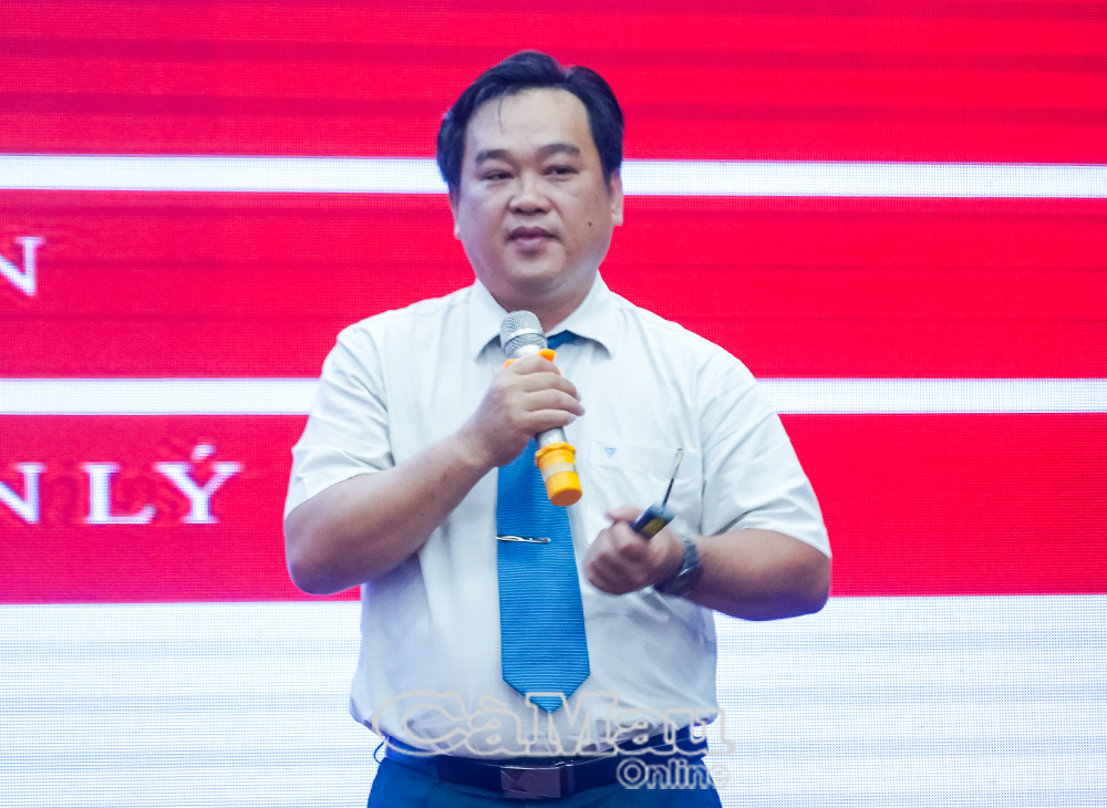 Ông Phạm Văn Tiến, Phó Giám đốc Trung tâm Chuyển đổi số (Sở Khoa học và Công nghệ tỉnh Cà Mau), trình bày tham luận.