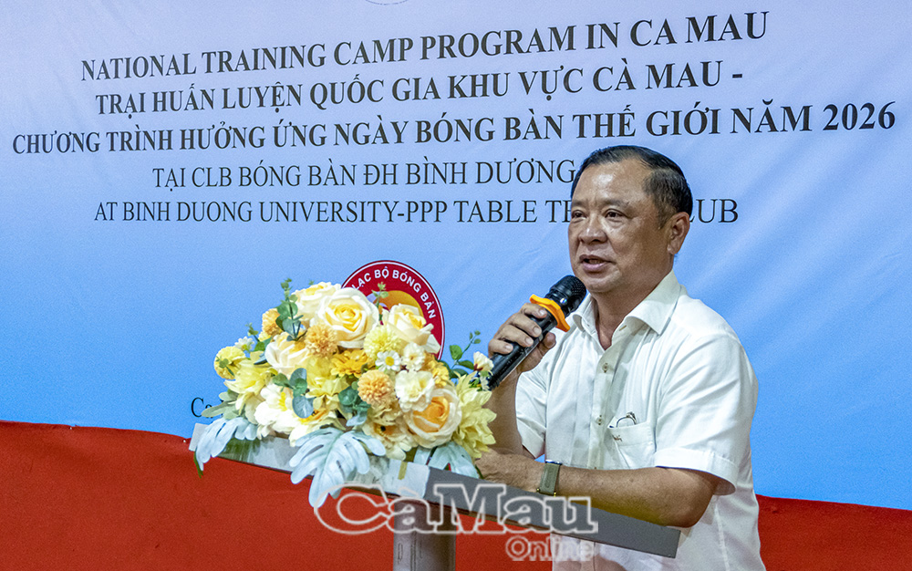 Báo Cà Mau Tối 23/3, Trung tâm Huấn luyện và Thi đấu thể thao tỉnh Cà Mau phối hợp với Câu lạc bộ Bóng bàn Trường Đại học Bình Dương (Phân hiệu Cà Mau) tổ chức khai mạc Chương trình Trại huấn luyện bóng bàn quốc gia - khu vực Cà Mau năm 2026.