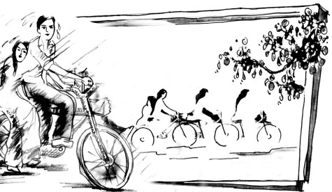 Sớm hôm sau, qua một giấc ngủ say vẫn biết đường đánh thức nhau dậy, “tút tát dung nhan” và lại lóc cóc đạp xe chở nhau về “ngoài chợ”, để khi vừa dắt xe vô cổng trường cũng là lúc “tùng tùng tùng” trống đánh vô giờ học.