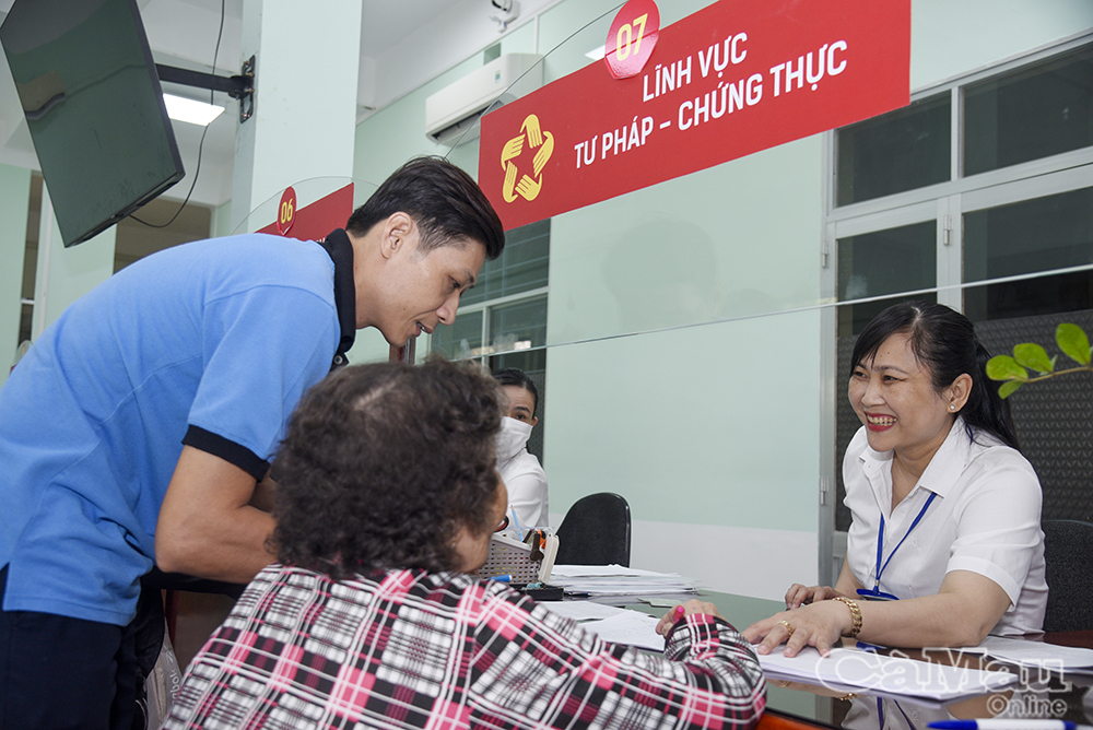 Công chức Huỳnh Thu Yến, phụ trách Tư pháp - Chứng thực tại Trung tâm Phục vụ hành chính công phường Bạc Liêu niềm nở, tận tình hỗ trợ người dân giải quyết thủ tục hành chính.