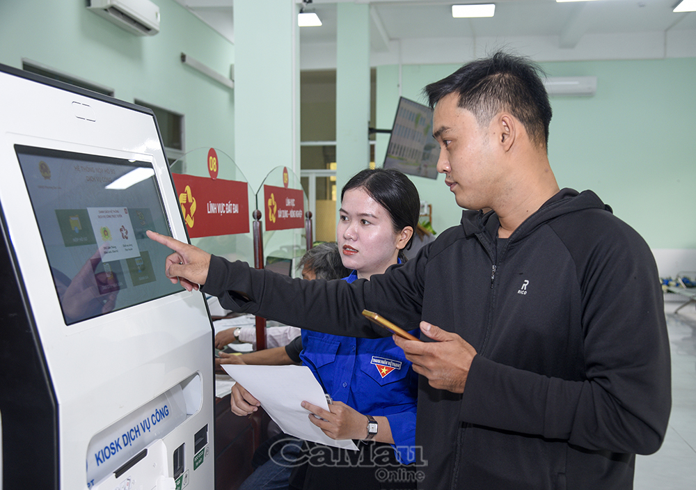 Đoàn viên phường Bạc Liêu tích cực hỗ trợ người dân tra cứu thủ tục hành chính trên Cổng dịch vụ công quốc gia.