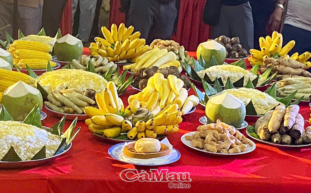 Thưởng thức món ngon từ cốm dẹp trong đêm cúng trăng.
