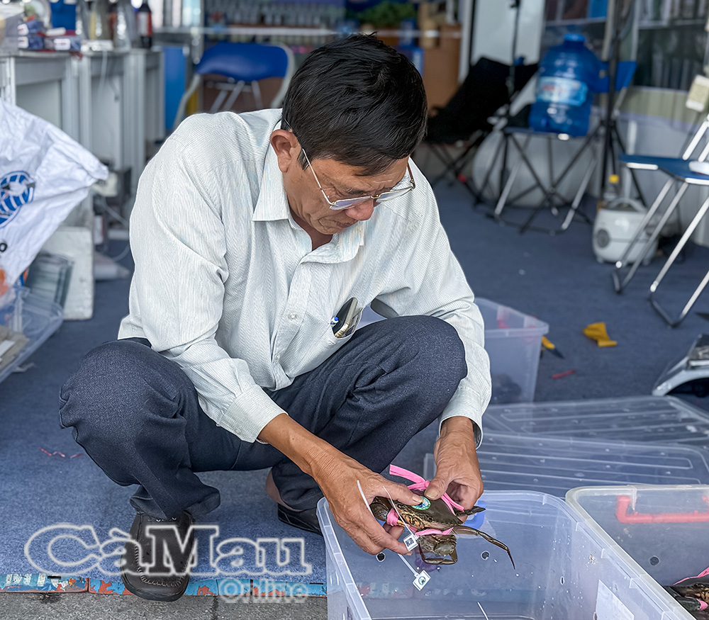 Ông Nguyễn Hoàng Ân gắn mã QR cho cua.