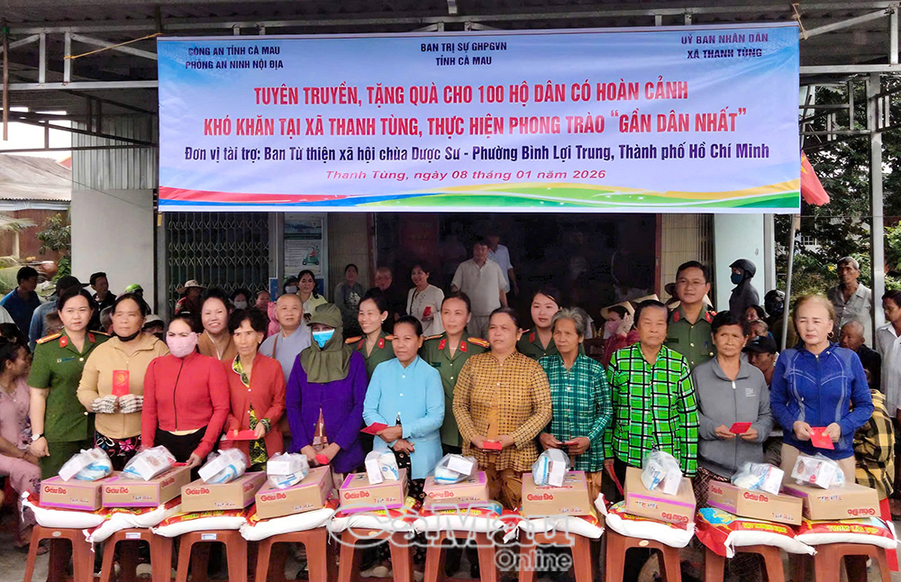 Bên cạnh đó, lực lượng công an đã tổ chức bàn giao 8 giếng nước, trao tặng hơn 200 phần quà cho các hộ dân có hoàn cảnh khó khăn tại xã Thanh Tùng và xã Trí Phải, với tổng kinh phí 93 triệu đồng; trao tặng 20 phần quà, tổ chức cấp thuốc miễn phí cho hơn 200 lượt người dân, duy trì hiệu quả mô hình “Gian hàng quần áo 0 đồng”, trao tặng hơn 500 bộ quần áo cho bà con có hoàn cảnh khó khăn tại xã Tân Lộc; trao tặng 34 phần quà "Tết ấm no cho em" và 15 xe đạp cho học sinh khó khăn tại phường Vĩnh Trạch.