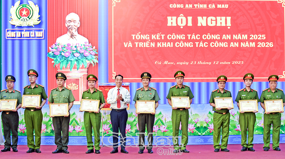 Dịp này, Bộ Công an tặng Cờ dẫn đầu phong trào thi đua cho Công an tỉnh Cà Mau và 10 tập thể; Chủ tịch UBND tỉnh tặng Bằng khen cho 12 tập thể, cá nhân có thành tích xuất sắc trong công tác năm 2025./.