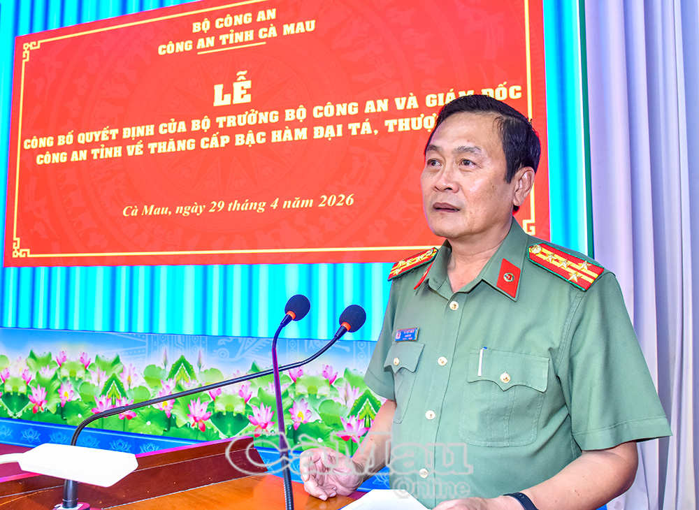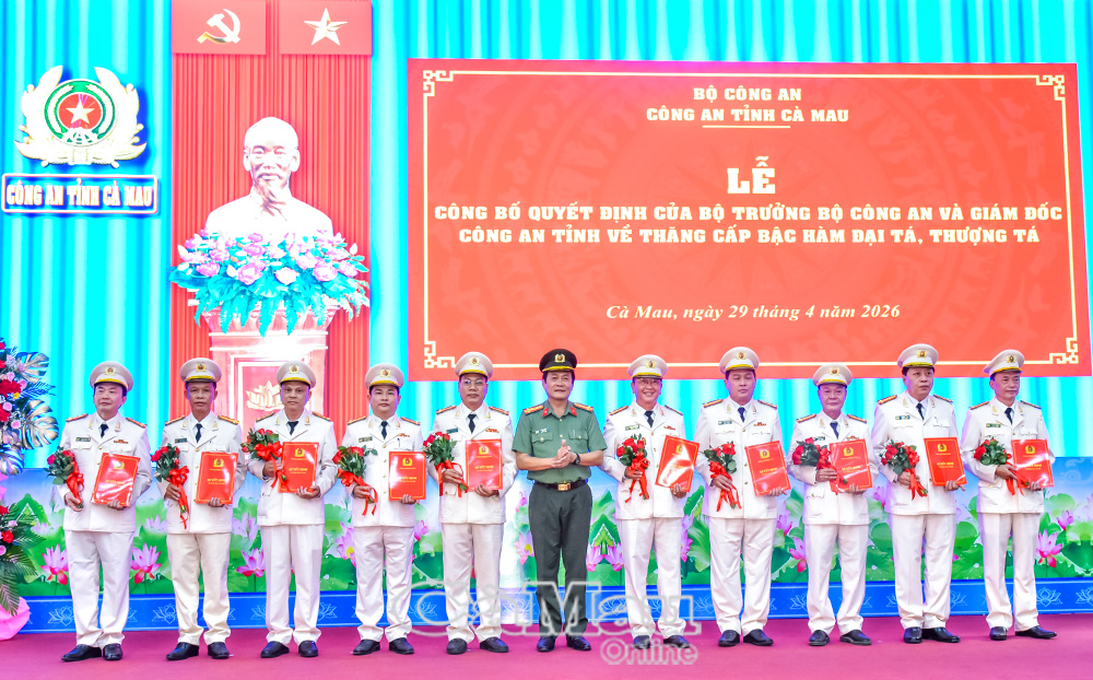 Chiều ngày 29/4, Công an tỉnh Cà Mau trang trọng tổ chức lễ công bố quyết định của Bộ trưởng Bộ Công an và Giám đốc Công an tỉnh về việc thăng cấp bậc hàm Đại tá, Thượng tá đối với các đồng chí lãnh đạo, chỉ huy trong lực lượng. Đại tá Hồ Việt Triều, Uỷ viên Ban Thường vụ Tỉnh uỷ, Bí thư Đảng uỷ, Giám đốc Công an tỉnh, chủ trì buổi lễ.