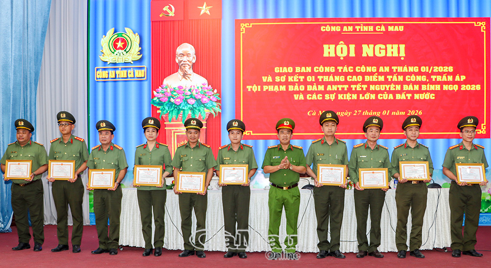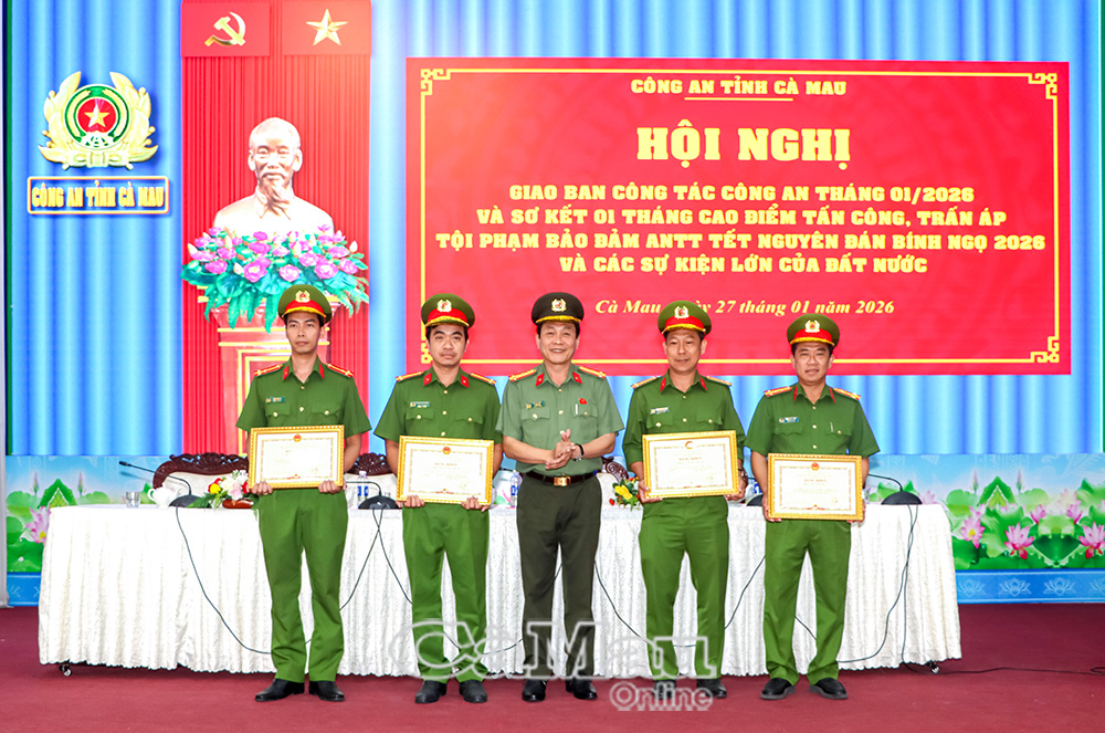 *Cùng ngày 27/1, Công an tỉnh Cà Mau tổ chức Hội nghị giao ban công tác Công an tháng 1/2026 và sơ kết 1 tháng cao điểm tấn công, trấn áp tội phạm, bảo đảm ANTT Tết Nguyên đán Bính Ngọ 2026 và các sự kiện lớn của đất nước.