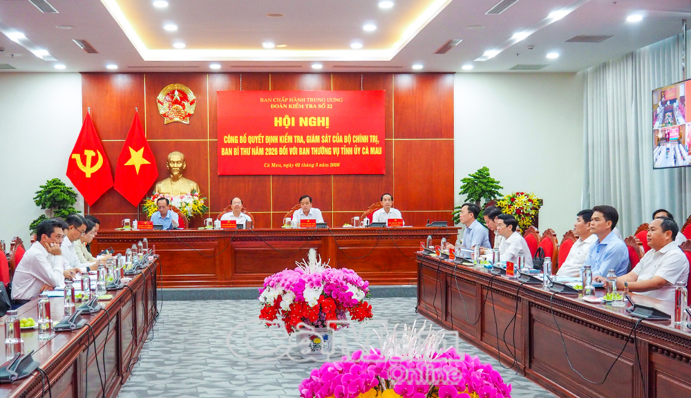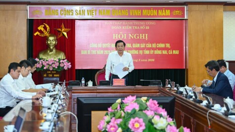 Chiều 2/3, tại trụ sở Ban Nội chính Trung ương, Đoàn kiểm tra, giám sát số 22 của Bộ Chính trị, Ban Bí thư tổ chức hội nghị trực tuyến công bố quyết định kiểm tra, giám sát năm 2026 đối với Ban Thường vụ Tỉnh uỷ Đồng Nai và Ban Thường vụ Tỉnh uỷ Cà Mau. Đồng chí Bùi Văn Nghiêm, Phó Trưởng ban Nội chính Trung ương, Phó Trưởng đoàn kiểm tra, giám sát số 22, chủ trì hội nghị.
