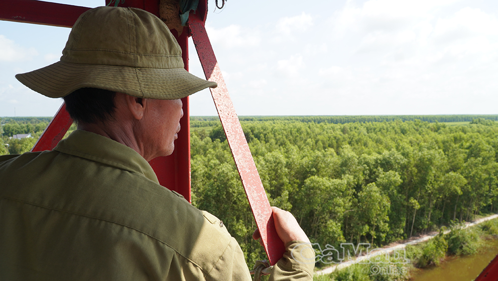 Các hộ dân trên lâm phần Công ty TNHH MTV Lâm nghiệp U Minh Hạ luôn cử lực lượng túc trực trên chòi canh để giữ rừng trong mùa khô.
