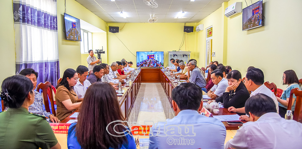 Hội nghị được tổ chức theo hình thức trực tuyến, kết nối hai điểm cầu xã Tân Thuận và Xã Tạ An Khương.