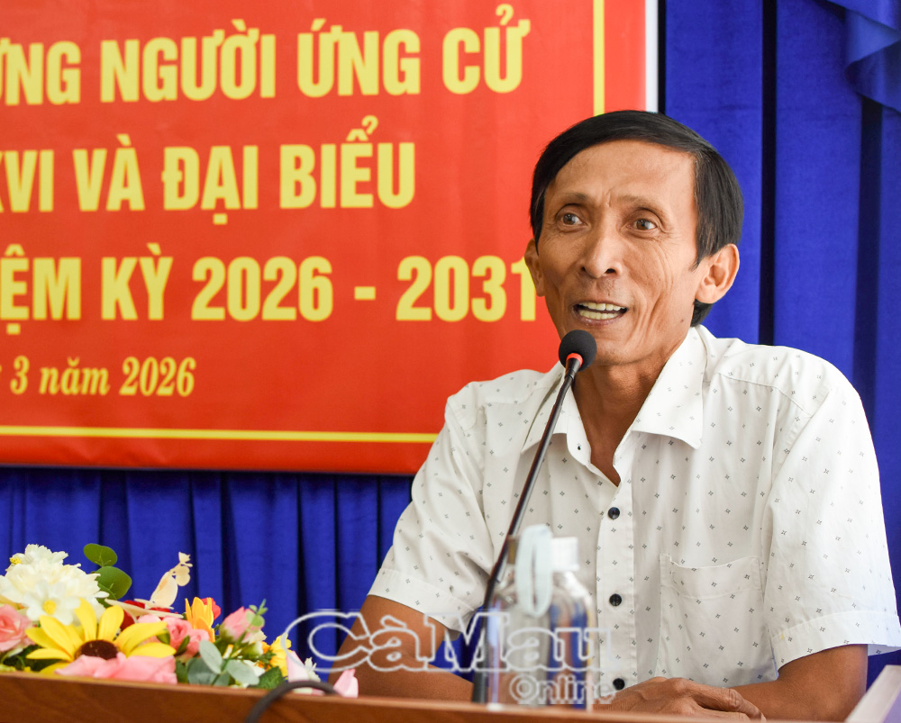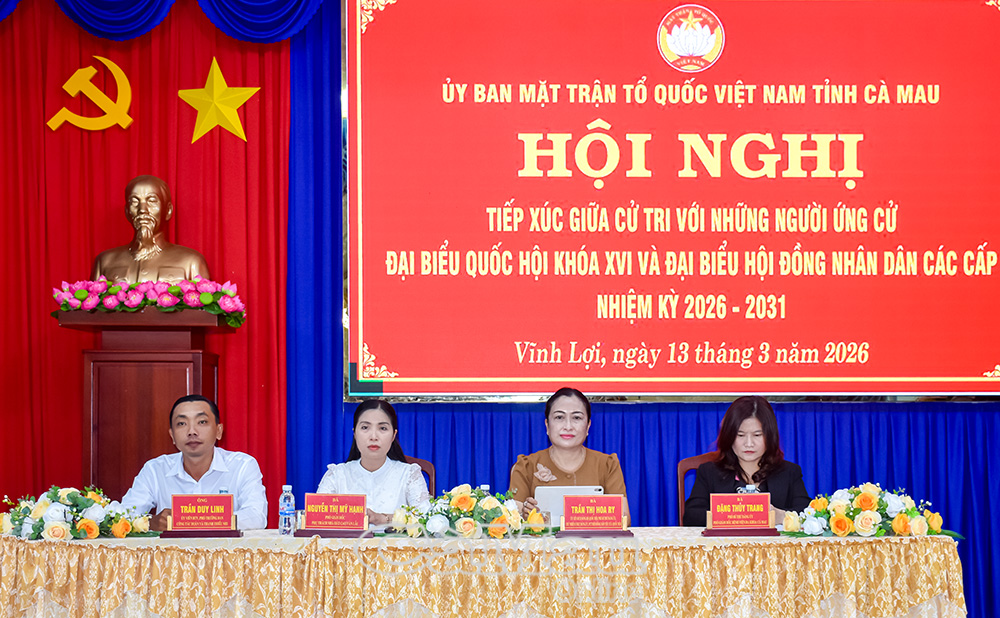 Báo Cà Mau Tiếp tục chương trình tiếp xúc cử tri trước ngày bầu cử, sáng 13/3, các ứng cử viên đại biểu Quốc hội khoá XVI và đại biểu HĐND tỉnh Cà Mau nhiệm kỳ 2026-2031 đã gặp gỡ cử tri tại các xã: Vĩnh Lợi, Tân Thuận và Tạ An Khương. Cử tri kỳ vọng các đại biểu trúng cử sẽ tiếp tục lắng nghe, phản ánh kịp thời tâm tư, nguyện vọng của Nhân dân.