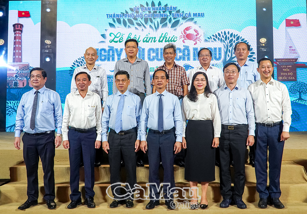 Lãnh đạo tỉnh Cà Mau cùng lãnh đạo TP Hồ Chí Minh chụp hình lưu niệm.