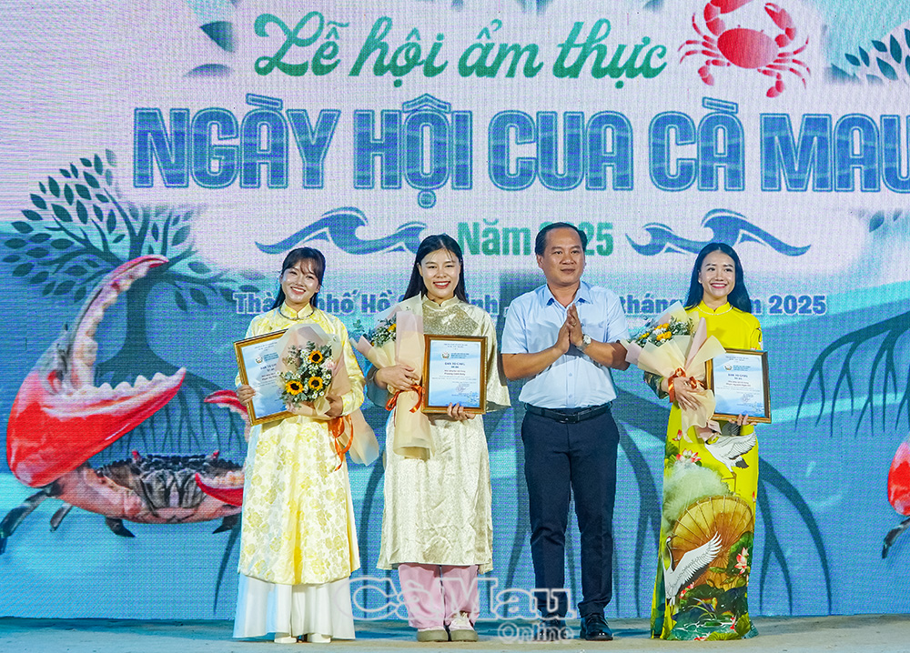 Dịp này, Chủ tịch UBND tỉnh Cà Mau đã tặng bằng khen cho 5 tập thể và 6 cá nhân có thành tích xuất sắc trong hoạt động của Ngày hội Cua Cà Mau lần II/2025 và sự kiện “Xin Chào Cà Mau” tại TP Hồ Chí Minh. Tỉnh cũng gửi thư cảm ơn đến 3 KOL đã tích cực quảng bá lễ hội, góp phần đưa hương rừng - vị biển Cà Mau lan toả rộng rãi.